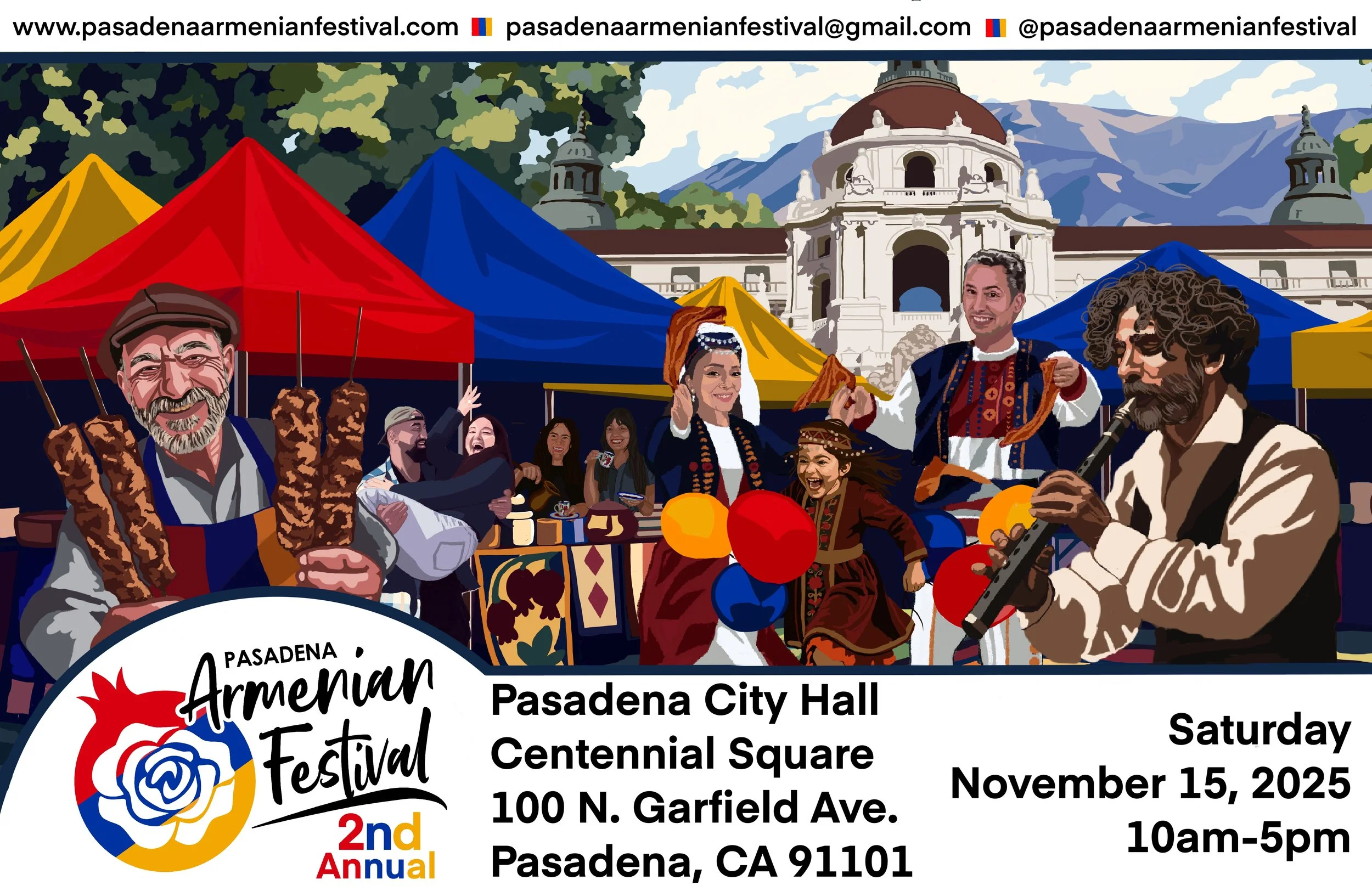 The 2nd Annual Pasadena Armenian Festival Will Take Place Saturday, November 15th 2025 at Centennial Plaza in front of Pasadena City Hall With More Food, More Vendors, and More Fun!
